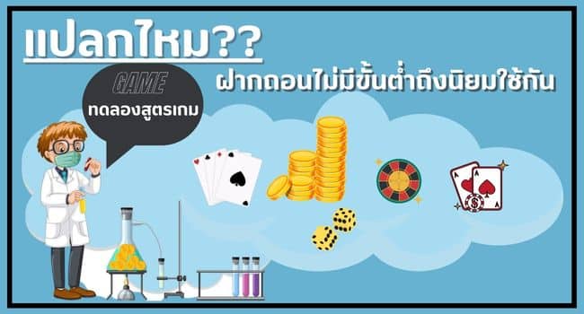 • สำหรับไว้ทดลองเล่นเกมใหม่ ๆ ที่เราไม่รู้จัก เป็นอีกวิธีเวลามีเกมใหม่ ๆ อัปเดตเข้ามา หรือเจอเกมที่เราอยากเล่น แต่เราไม่เคยเล่นก็สามารถใช้วิธีการฝากถอนไม่มีขั้นต่ำคือวิธีที่ดีที่สุดเพื่อการทดสอบในการลงทุน ว่าตัวเกมที่เราทดสอบมีความสเถียรและการเล่นที่ได้เงินซับซ้อนเยอะมากไหม โดยเราจะไม่ต้องกังวลเรื่องการลงทุนในอนาคต เมื่อเรารู้หลักการเล่นเกมของแต่ละเกมจะทำให้เรารูัโอกาสทำเงินกำไรมาได้อย่างง่ายดาย